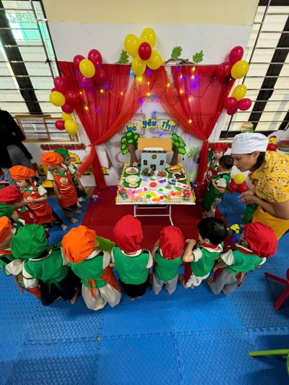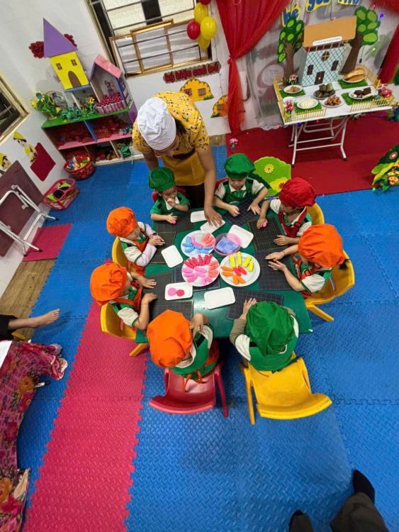 Hoạt động giúp các bé rèn luyện sự khéo léo, phát triển kỹ năng vận động tinh, đồng thời kích thích trí tưởng tượng và khả năng sáng tạo. Bé nào cũng chăm chú, say mê, và không quên khoe “chiếc bánh ngon nhất” của mình với cô và các bạn. 😍